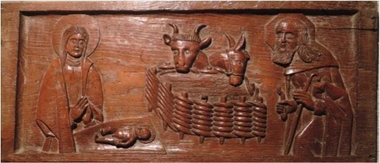 Natividad, parte de un panel de madera tallada, medidas, procedencia, datación y otras circunstancias desconocidas, Museo del Monasterio de Sant Joan de les Abadesses (Ripollès, Gerona).